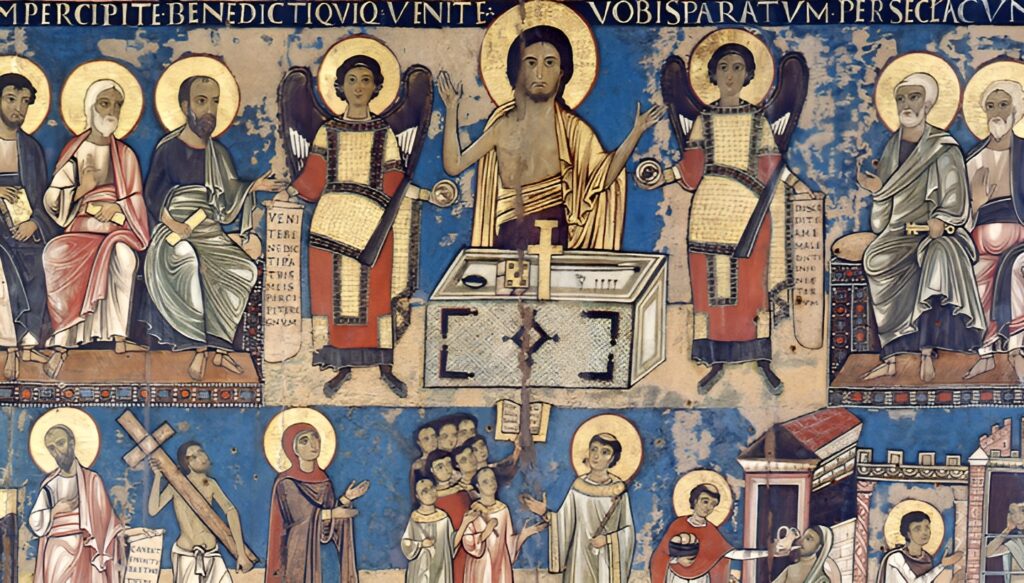 Вот современный человек, к примеру, такой как я, слегка образованный картезианец, что не от слова Святой Бруно, а от слова философ Декарт – как все перемешалось. Вот такой человек приходит в Пинакотеку Римского Папы, богатую святыми образами, не чтобы верить, а чтобы узнать о том, как это было, когда «верили».