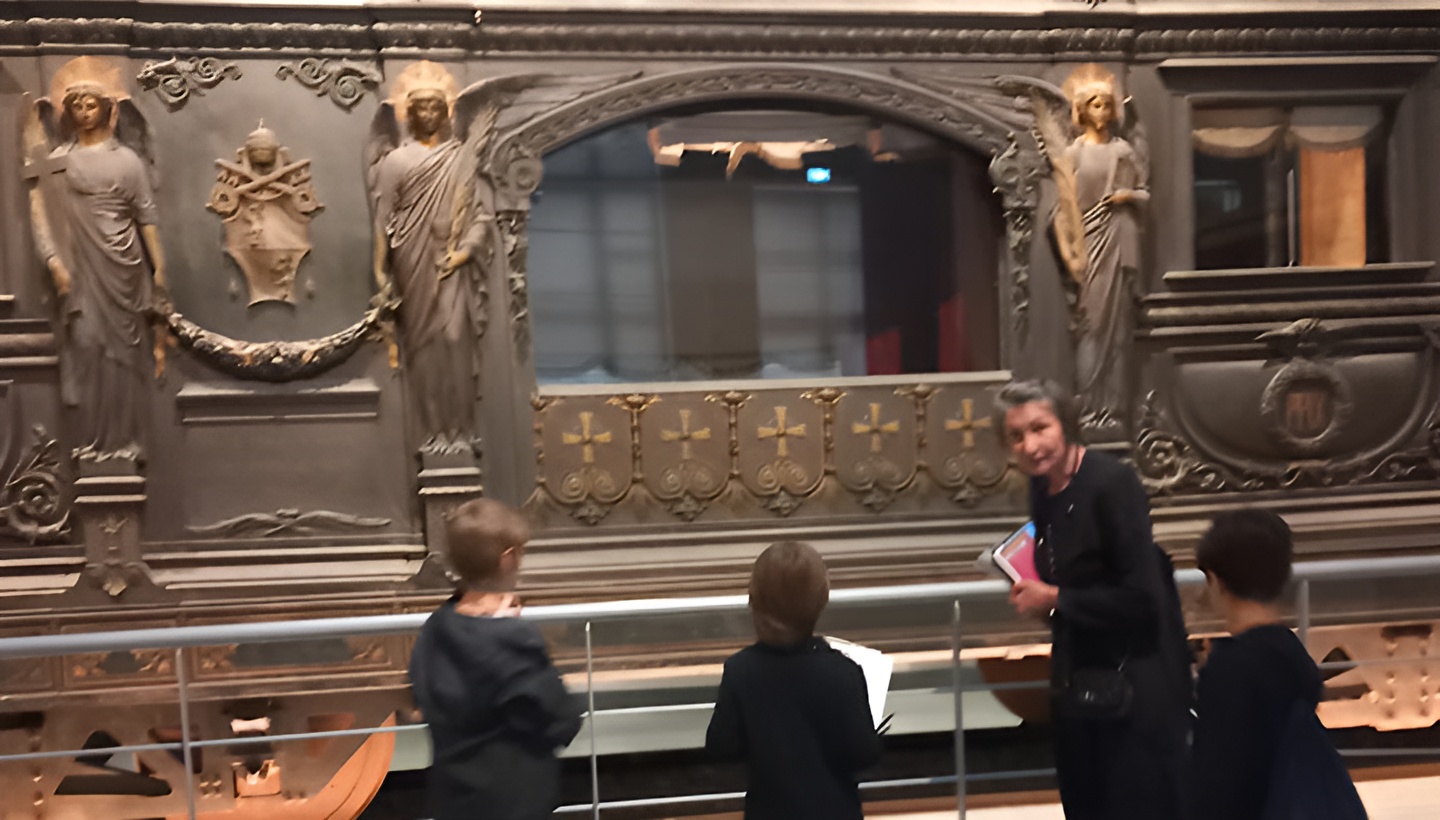 Мы увидели вагоны поезда римского папы и представили, как смелый Папа передвигался поездом, когда все очень боялись этого нового транспорта.