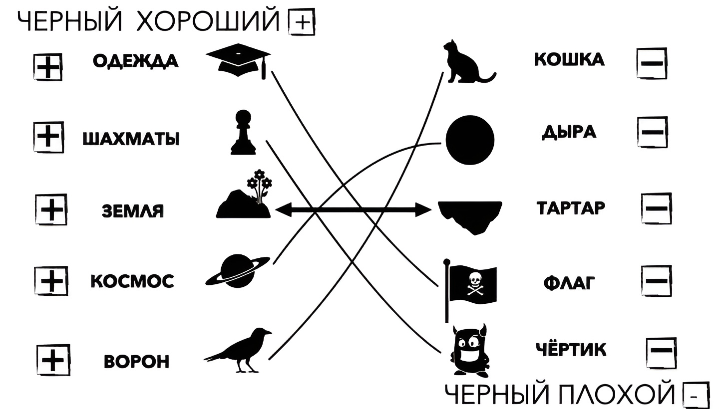 Мы обсудили, что черный цвет бывает “хороший” и “плохой”. Мы их сравнивали и поняли, что черный одинаково может оказаться и “хорошим” и “плохим”, что зависит от ситуации.