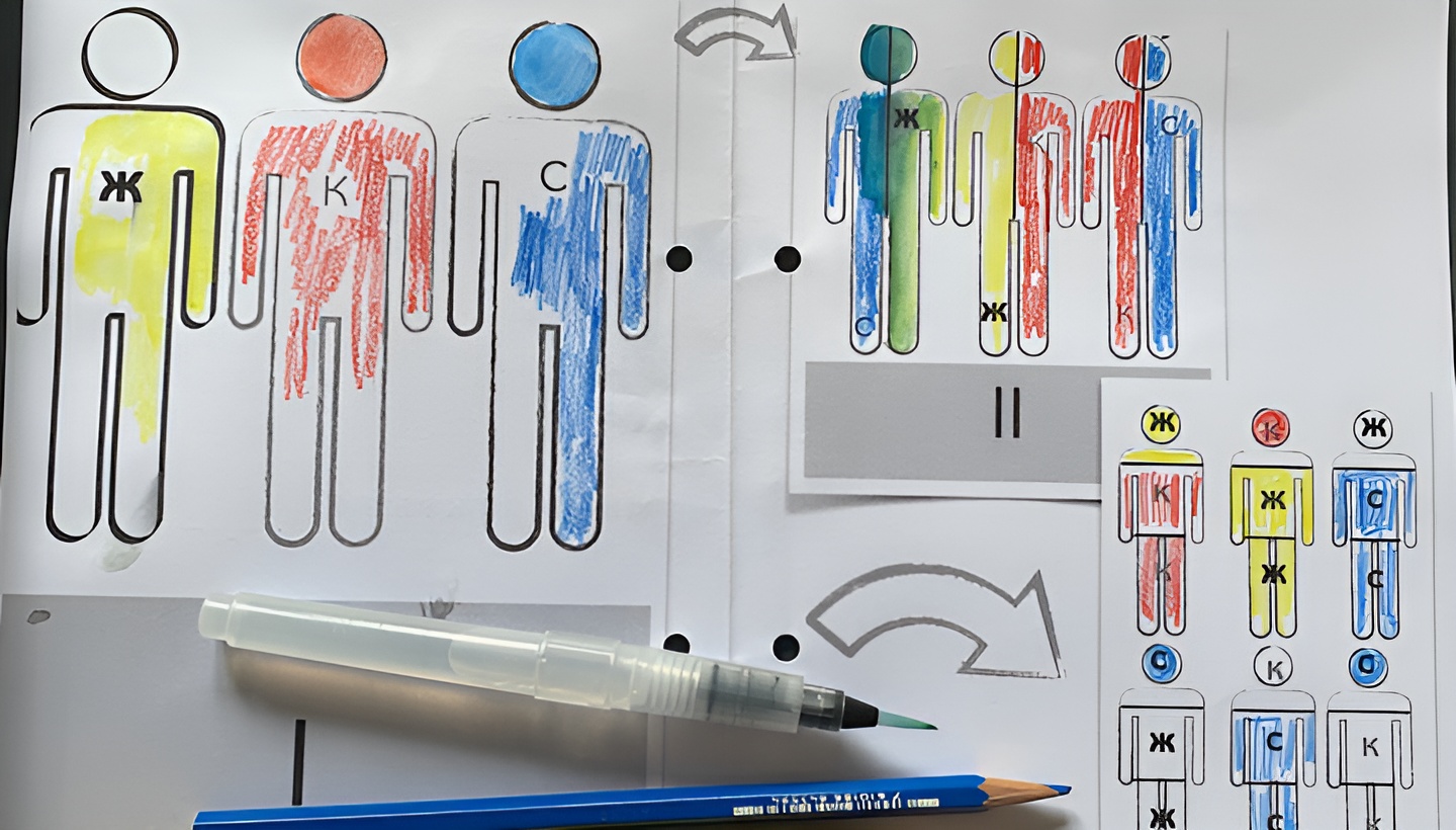 [spoiler show=”как это сделать ⇐”] Теперь, когда в твоей коробке есть главные цвета, раскрась “Цветную семейку”Сначала “РОДИТЕЛИ” – заполни цветом три ГЛАВНЫХ фигуры. Какие цвета ГЛАВНЫЕ и являются “родителями” других цветов?