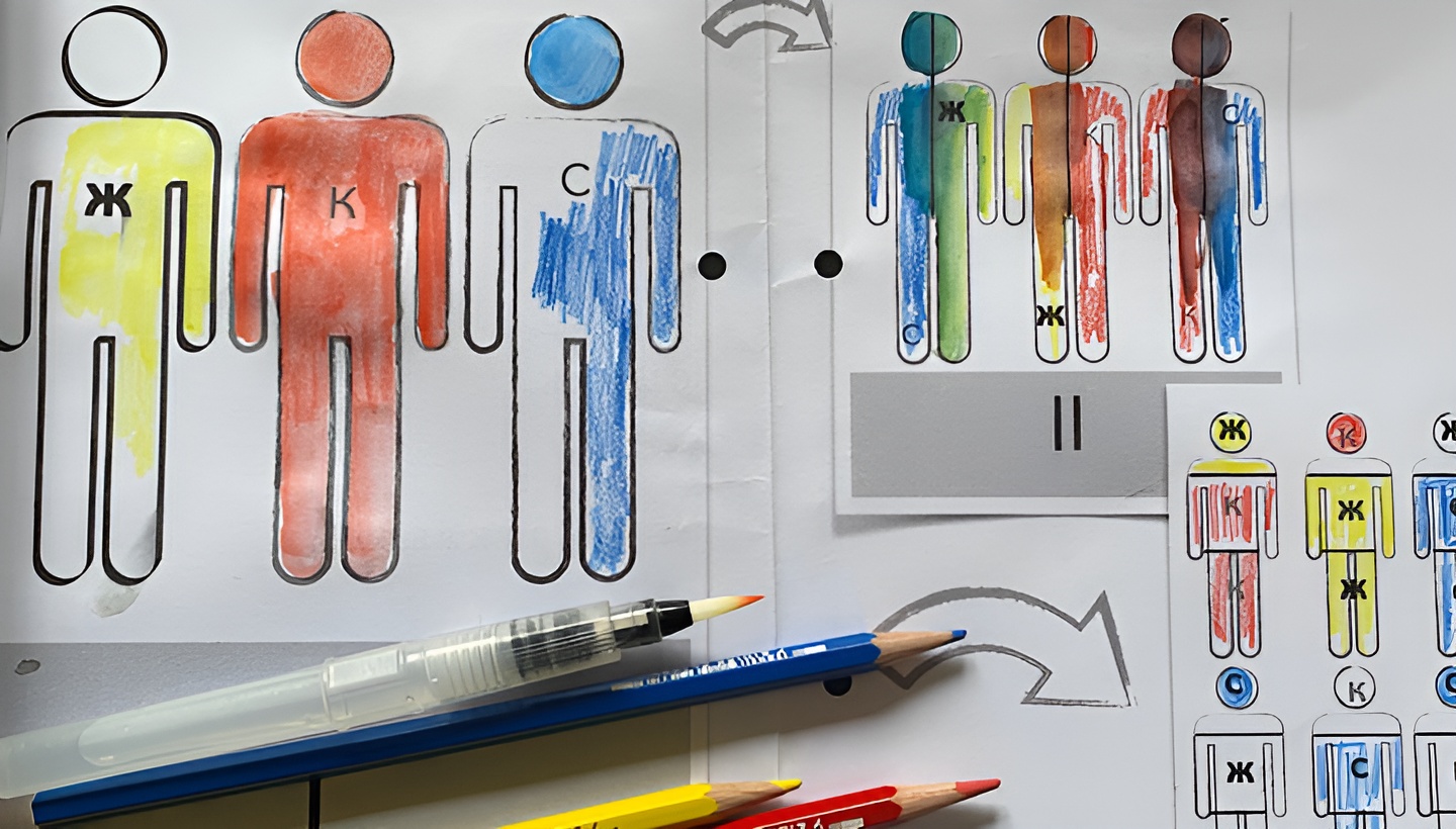 Потом начинай творить: смешай составные цвета = “ДЕТИ”. Что получится, если смешать СИНИЙ и ЖЕЛТЫЙ? Подсказка: 🔎 ЗЕЛЕНЫЙ / если смешать СИНИЙ и КРАСНЫЙ? Подсказка: 🔎 ФИОЛЕТОВЫЙ / если смешать КРАСНЫЙ и ЖЕЛТЫЙ? Подсказка: 🔎 ОРАНЖЕВЫЙ